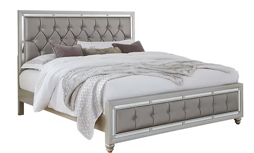 The Luna puts a contemporary spin on old-world style. The luxurious silver finish and mirror accents add sleek, ultramodern touches, while a tufted headboard and footboard echo the traditional style of upscale, craftsman-made furniture.